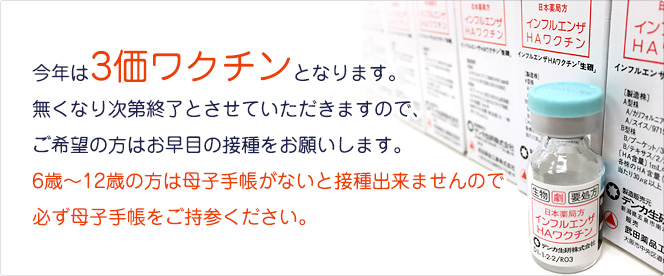 現在施行させていただいておりますインフルエンザ予防接種につきまして、当院の方針をお伝えさせていただきます。